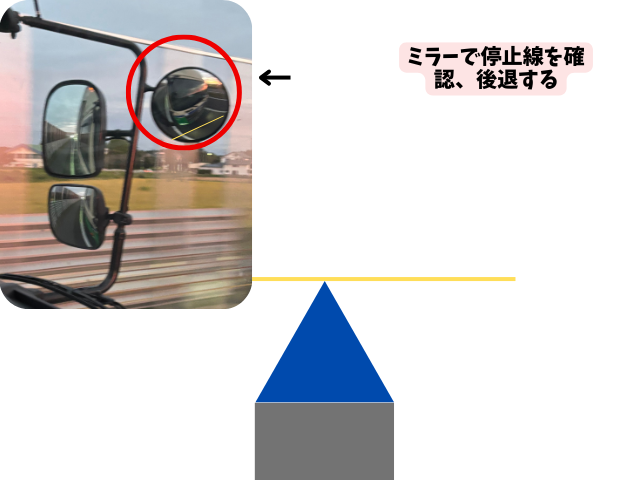 👉停止位置を確認するにはアンダーミラーを使用するとよいです。